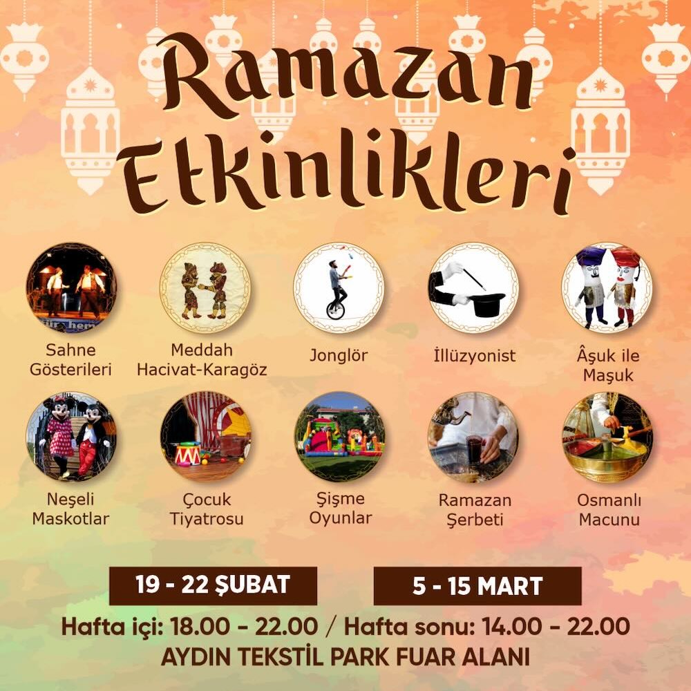 Aydın Büyükşehir Belediyesi, Aydınlıları Ramazan etkinlikleri ile bir araya getirecek. Programlarda geleneksel Ramazan gösterileri ve çocuklara yönelik etkinlikler yer alacak.