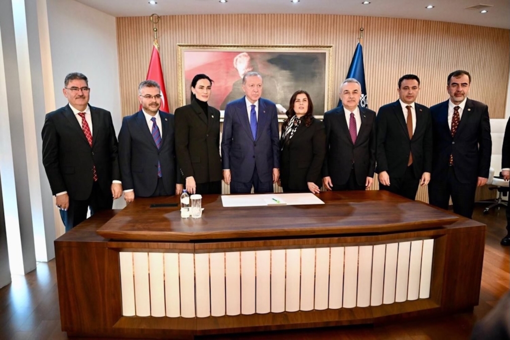 Başkan Çerçioğlu ve Vali Canbolat ile bir süre görüşme gerçekleştiren Cumhurbaşkanı Erdoğan’a, hediye takdim edildi.