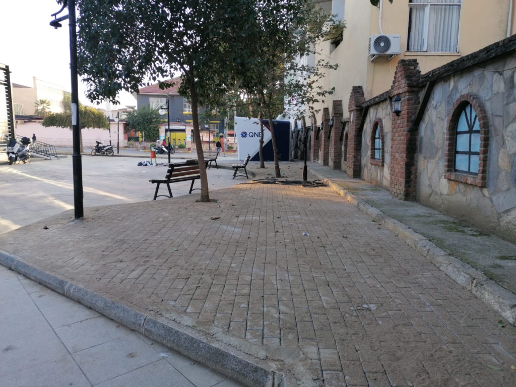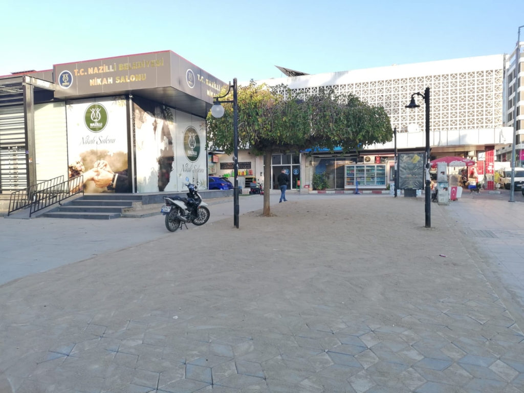 Geçtiğimiz günlerde başlatılan çalışmalar kapsamında; Şehit Mustafa Akdağ Parkı önündeki Aydın Büyükşehir Belediyesi’nin ekmek büfesi kaldırıldı, akabinde de banka ATM’lerinin yeri değiştirildi. Ekmek büfesinin kaldırımdaki eski betonu söküldü ve ATM’lerin eski toprak alanı parke taşı ile kaplandı. Hızını alamayan Nazilli Belediyesi Park ve Bahçeler Müdürlüğü ekipleri, nikah salonunun üç tarafındaki yeşil alanları ve binaların önündeki yeşil alanı da parke taşı ile kapladı.