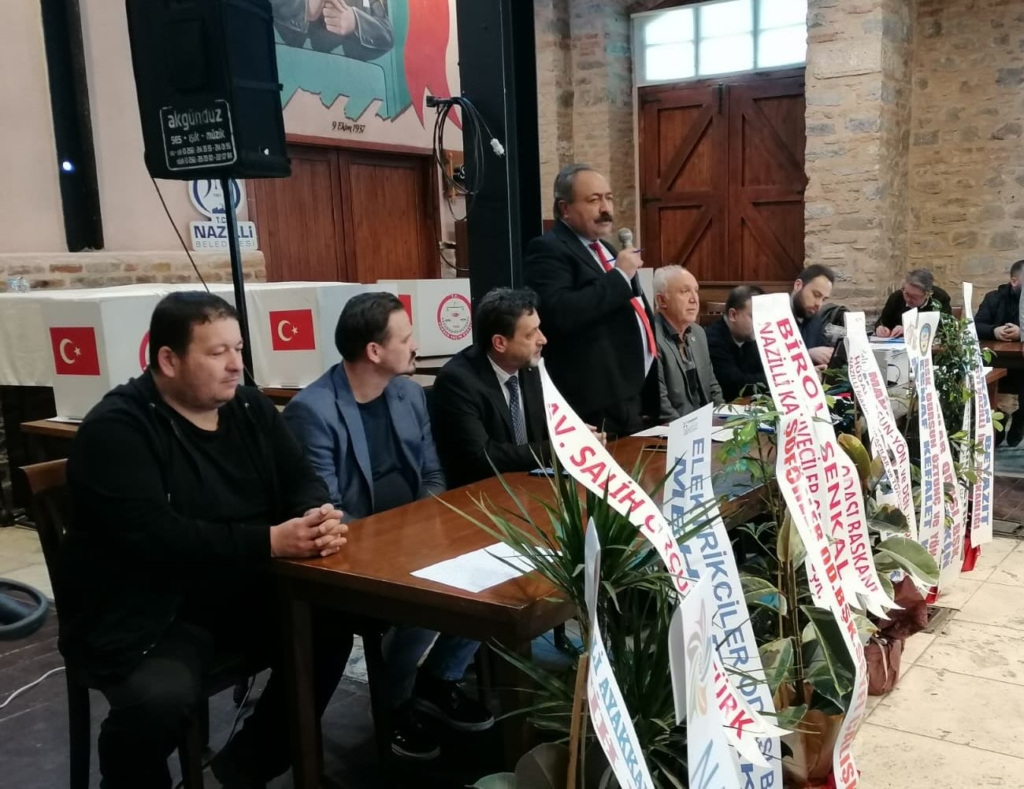 Nazilli Bakkallar ve Bayiler Esnaf Odası Başkanlığı Olağan Genel Kurulu, Hangar Cafe Restoran’da gerçekleştirildi. Mevcut Başkan Fatih Astepe’nin tek aday olarak yer aldığı kurula; Aydın Bakkallar Odası Başkanı İlyas Seçkin, Aydın Şoförler Odası Başkanı Semih Özmeriç, Nazilli Esnaf ve Sanatkarlar Kredi ve Kefalet Kooperatifi Başkanı Dursun Öztunç, Nazilli Belediyesi eski Başkanı Kürşat Engin Özcan, Nazilli’deki meslek odaları başkanları, Nazilli Muhtarlar Derneği Başkanı Mustafa Karaburun, mahalle muhtarları ve oda üyesi esnaflar katıldı.