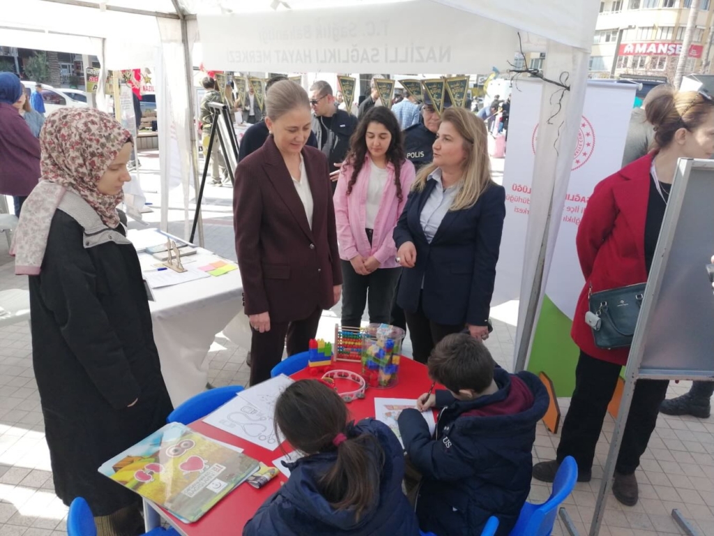 Tüm stantları dolaşarak sağlık çalışanlarından çalışmaları hakkında bilgi alan Kaymakam Kan, hizmetlerden dolayı sağlık çalışanlarına teşekkür ederken, stantları ziyaret eden kadınlar ve çocuklarla yakından ilgilendi.