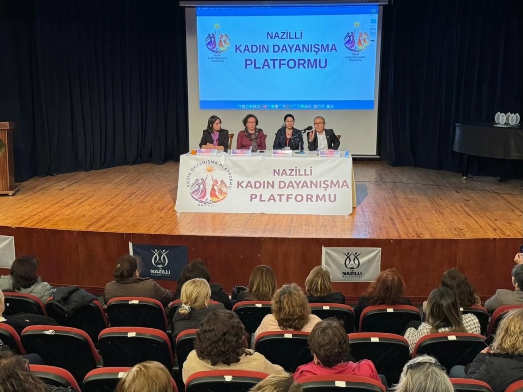 Nazilli Dayanışma Platformu’nun ‘8 Mart Dünya Emekçi Kadınlar Günü’ dolayısıyla düzenlediği son etkinlik; Nazilli Belediyesi Mehmet Yüzügüler Kültür Merkezi’ndeki “Kadın Emeğinden Hukuk Mücadelesine: Tarihsel ve Güncel Perspektifler” başlıklı panel oldu. Moderatörlüğünü Selcan Oğuz’un yaptığı panelde; Muğla Sıtkı Koçman Üniversitesi Öğretim Üyesi Prof. Dr. Özlem Şahin Güngör, Pamukkale Üniversitesi Öğretim Üyesi Prof. Dr. Çağla Ünlütürk Ulutaş ve Avukat Nezahat İçer konuşmacı olarak yer aldı.