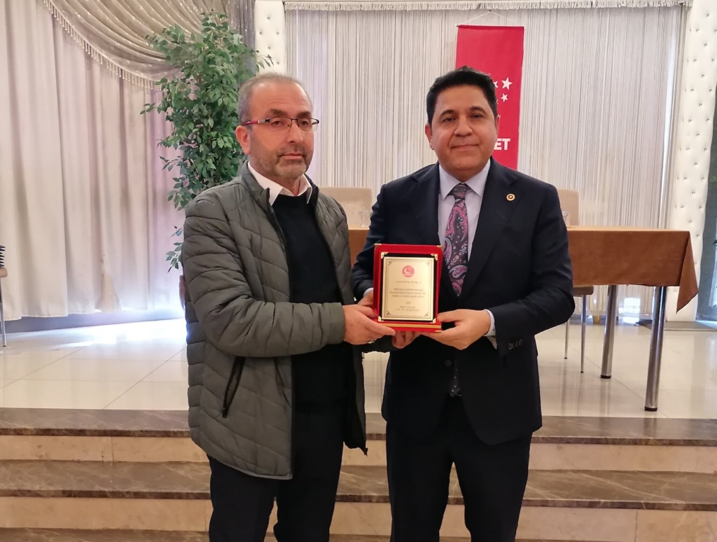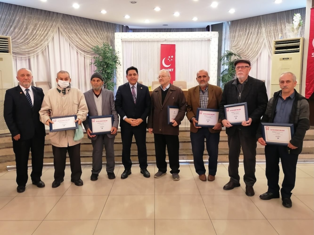 Konuşmaların ardından; Grup Başkanvekili ve İstanbul Milletvekili Kaya, uzun yıllar Nazilli’de Milli Görüş davasına hizmet eden ve sağlık sorunları nedeniyle görevini bırakan önceki dönem İlçe Başkanı Vahap Kırca’ya ‘Teşekkür Plaketi’ takdim ederken, SP Aydın İl Başkanı Özkan da partiye yıllarca hizmet etmiş Oktay Alpsümer, İsmail Dalda, Mehmet Emin Çiftçi, İsmet Türe, Mehmet Hançer, Ali İşler ve Muzaffer Danacı’ya ‘Üstün Hizmet Belgesi’ takdim etti.